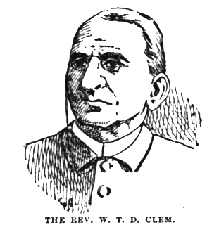 Rev. William T. D. Clemm (1814-1895) was the nephew, by marriage, of Poe's Aunt and Mother-in-Law, Maria Clemm. His father was James S. Clemm, a younger brother of the William Clemm, Jr. who took Maria Poe as his second wife. He was born in Franklin County, Tennessee. He married Elizabeth Ann Bowman, and they had at least one child. His middle initials may have stood for Thomas David, as their son was William Thomas Bowman Clemm. An obituary in the Semi-Weekly Era (Lancaster, PA), for February 16, 1895 (p. 5) includes the comments: “Mr Clemm said he was a crank on the prohibition question, and was glad of it. He wore a little golden crank and a piece of white ribbon on his coat. He was also an ardent woman suffragist, and wanted the Constituion of the Methodist Church so amended that women could become preachers.” He was an Episcopalian minister, as the Clemm family was primarily Episcopalian. In 1840, he was a junior preacher at the M. E. Church in Woodberry Township, PA. At the time of Poe's death in 1849, Rev. Clemm was a pastor of the Caroline Street M. E. Church. In 1858 and 1859, he was one of the pastors at Eutaw Street M. E. Church. Rev. Clemm was the pastor at Towsontown Methodist Episcopal Church 1882-1885, in a building that originally stood near the intersection of Joppa and Dulaney Valley Roads, next to what is now Prospect Hill Cemetery. (That building was completed in 1871, and demolished in ????). He was the pastor at Catonsville M. E. church in 1889.